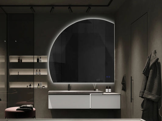 Jill Links (Uitverkocht) | LED Badkamerspiegel – Halfrond Design met Verwarming, Touchbediening