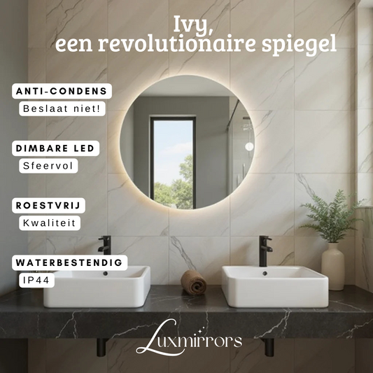 Ivy | LED Badkamerspiegel Rond Design met Verwarming & Touchbediening – 80cm tot 120 cm diameter