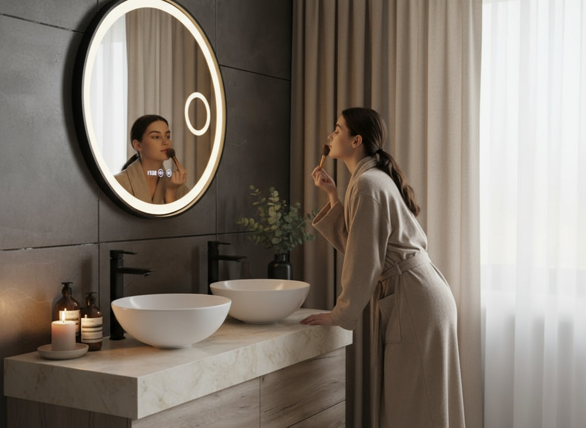 Een spiegel met verwarming voorkomt condensvorming na het douchen. Zo blijft de spiegel altijd helder, zonder schoonmaken of droogvegen. Dit zorgt voor comfort, gemak en een luxe uitstraling.