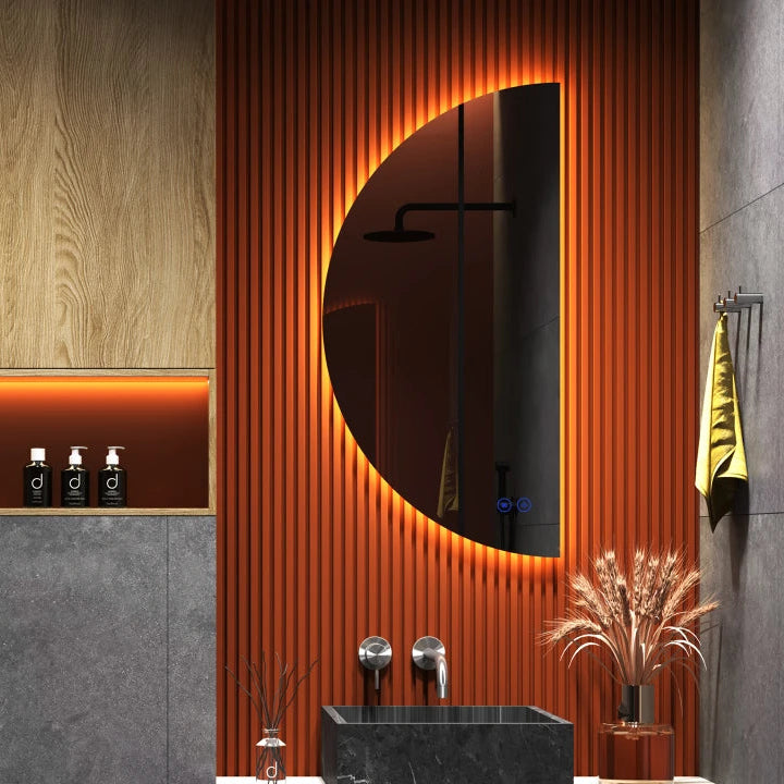 Het halfronde design is modern en ruimtebesparend, ideaal voor kleinere badkamers of toiletruimtes. De LED-verlichting zorgt voor optimaal licht, zelfs in de kleinste ruimtes.