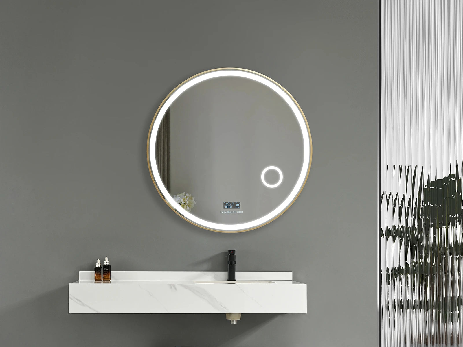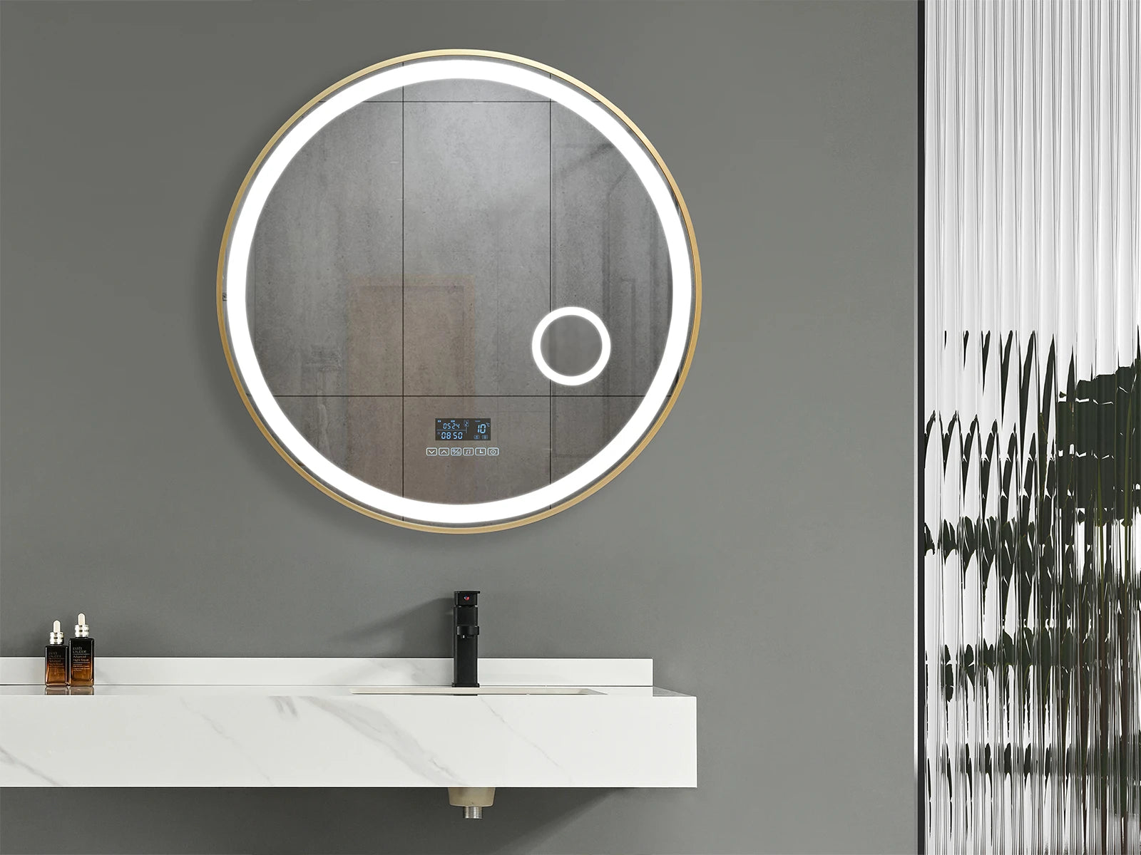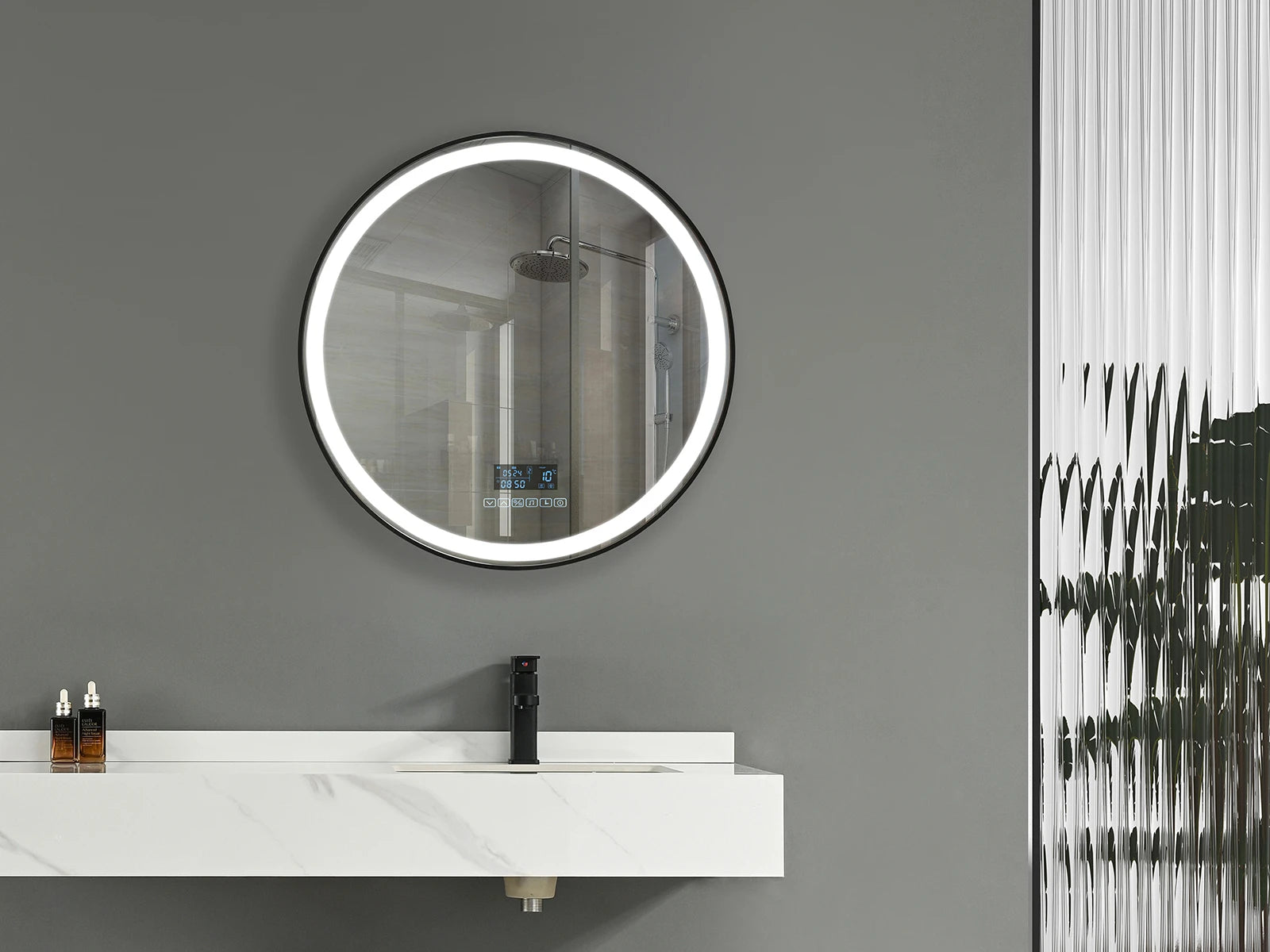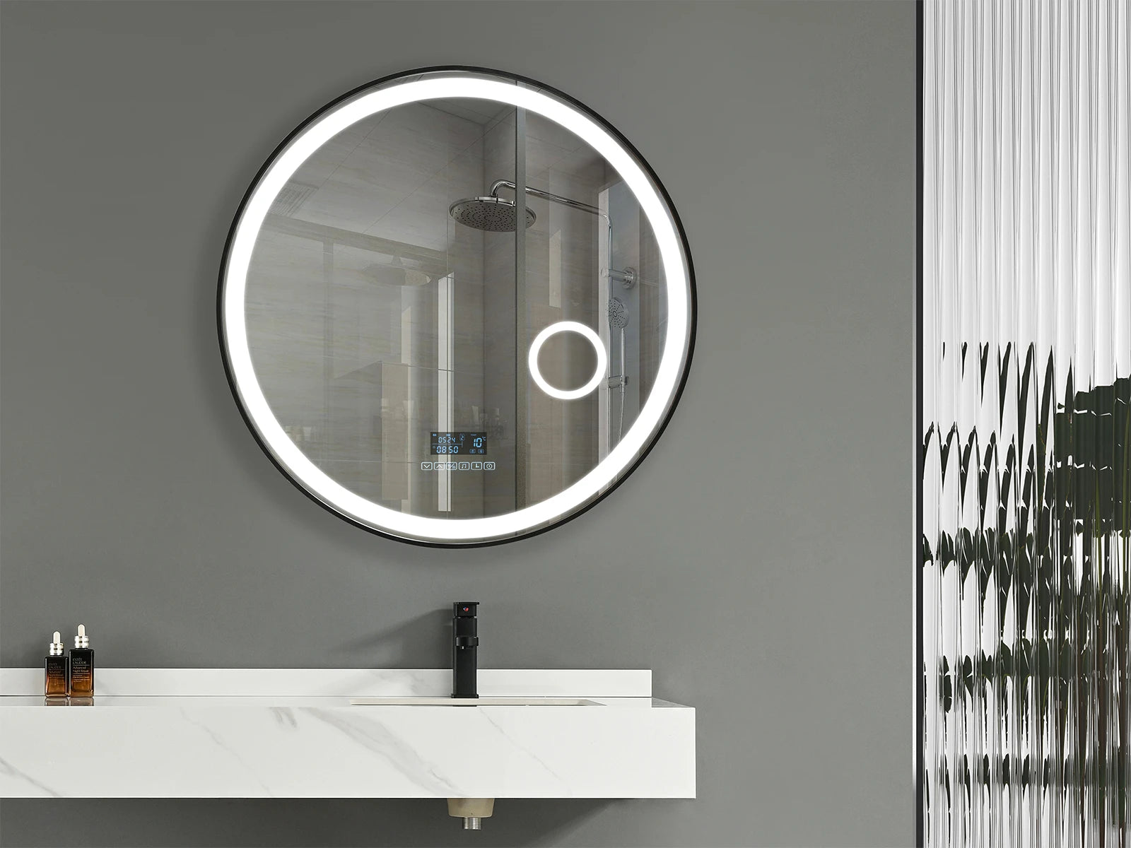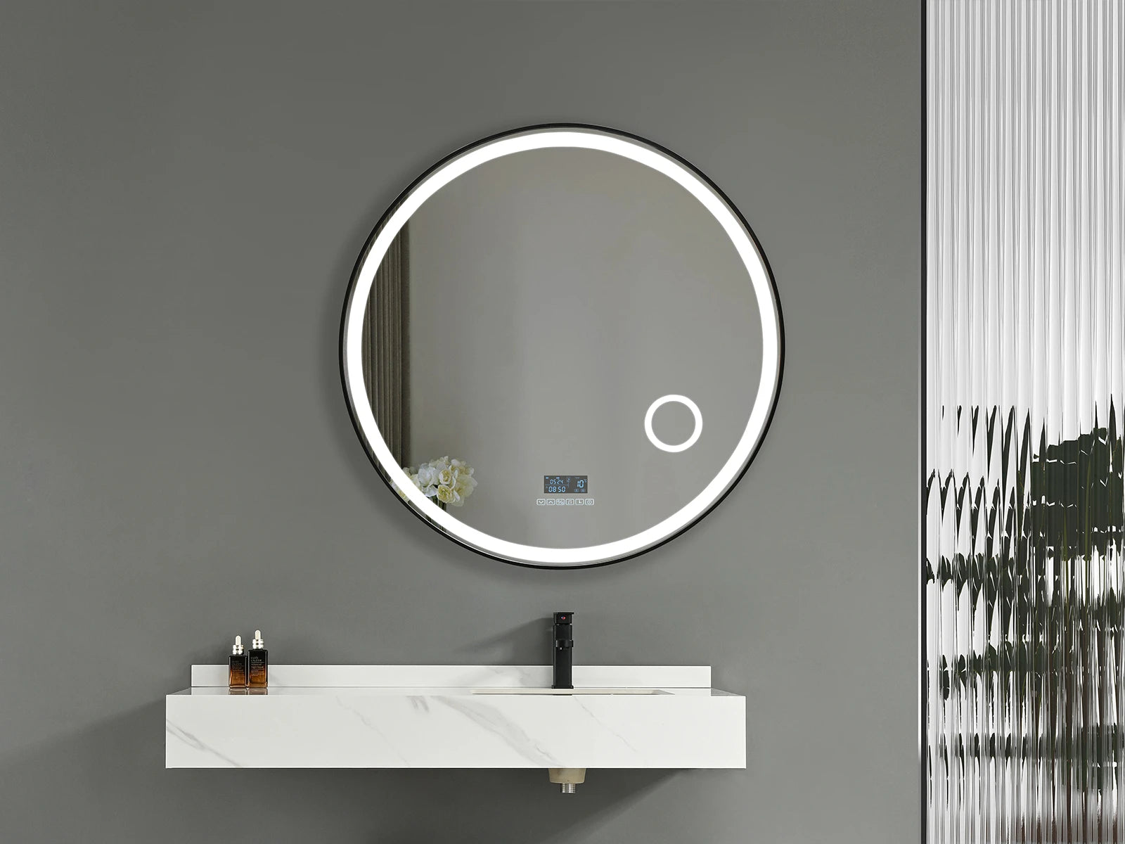 De Bluetooth-connectiviteit laat je genieten van je favoriete muziek of podcasts tijdens je ochtendroutine. Het ronde design is tijdloos en past perfect in elke badkamerstijl.