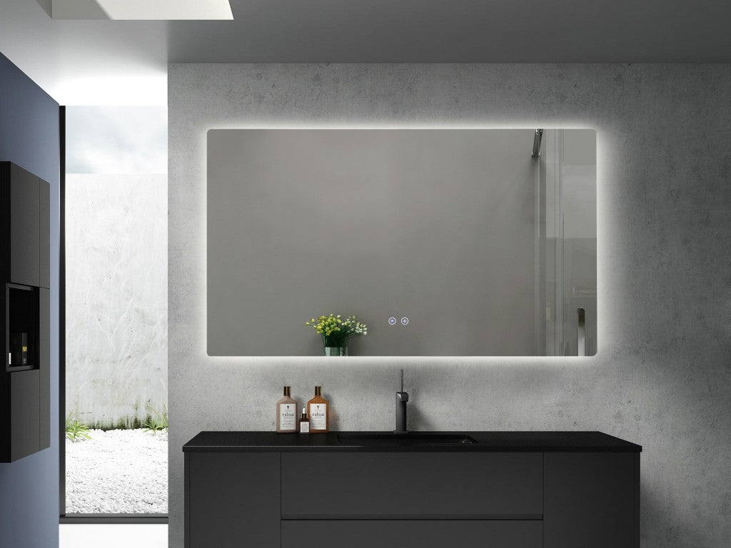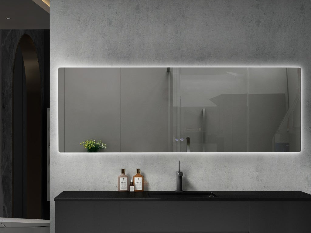 Het langwerpige design past perfect in moderne badkamers en biedt een ruim zicht voor het hele gezin. De LED-verlichting is dimbaar en de touchbediening maakt alles eenvoudig instelbaar zonder extra schakelaars.