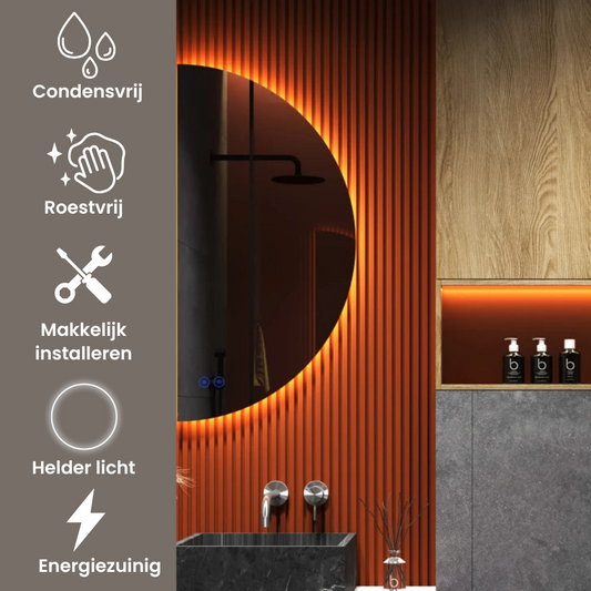 Ivy | LED Badkamerspiegel Rond Design met Verwarming & Touchbediening – 80cm tot 120 cm diameter