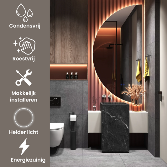 Jill Links (Uitverkocht) | LED Badkamerspiegel – Halfrond Design met Verwarming, Touchbediening